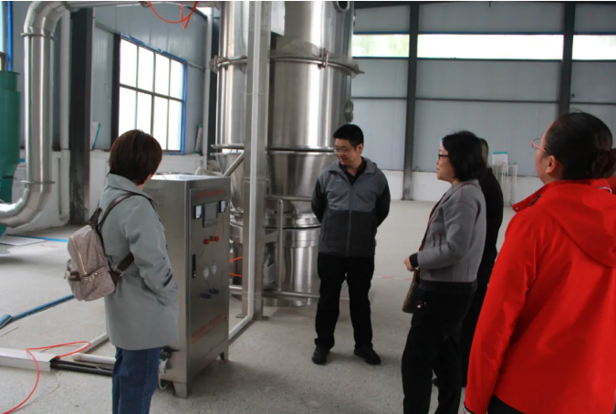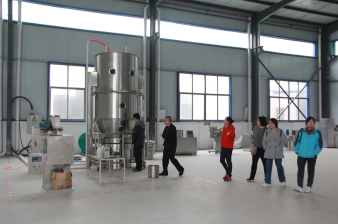 山東農(nóng)業(yè)大學(xué)劉建柱教授和藥學(xué)系老師們參觀了公司的科技研發(fā)中心、生產(chǎn)車間等,邢主任對(duì)廠區(qū)內(nèi)的環(huán)境設(shè)施和運(yùn)作流程、工藝流程等進(jìn)行了講解。