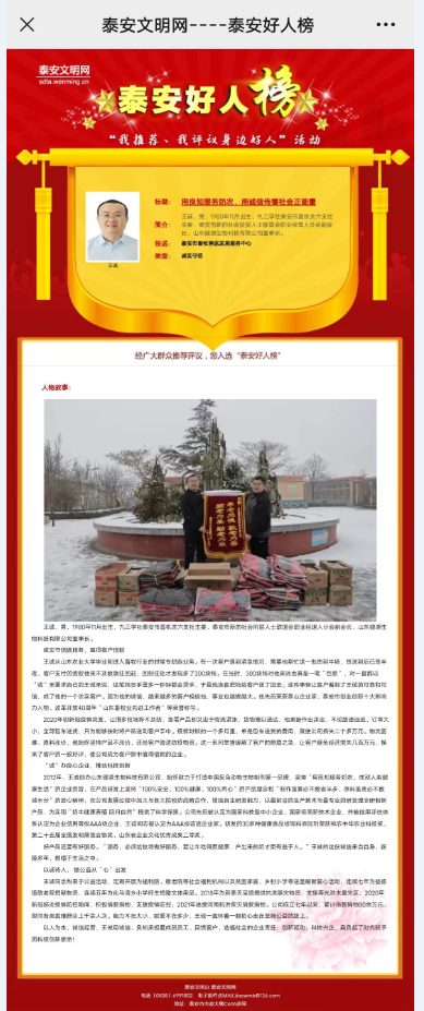 熱烈祝賀我公司王誠董事長接連入選“泰安好人榜”、“山東好人”均為誠實守信類