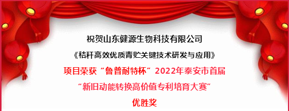 祝賀山東健源生物榮獲2022年泰安市首屆“新舊動能轉換高價值專利培育大賽”優勝獎