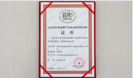 山東省生物發(fā)酵產(chǎn)業(yè)協(xié)會科學(xué)技術(shù)獎科技進(jìn)步獎一等獎