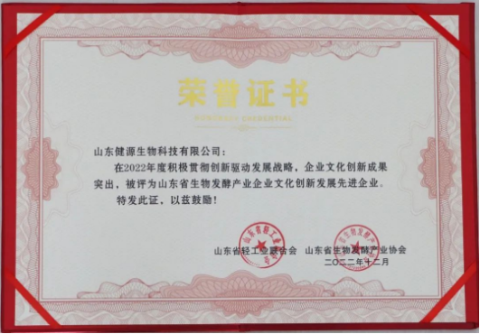 山東省生物發酵產業企業文化創新發展先進企業