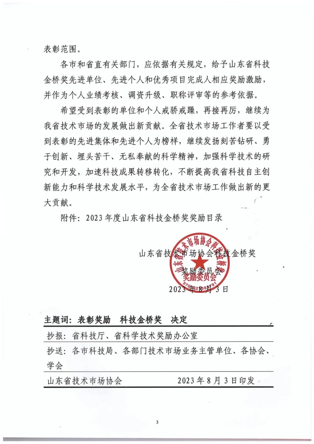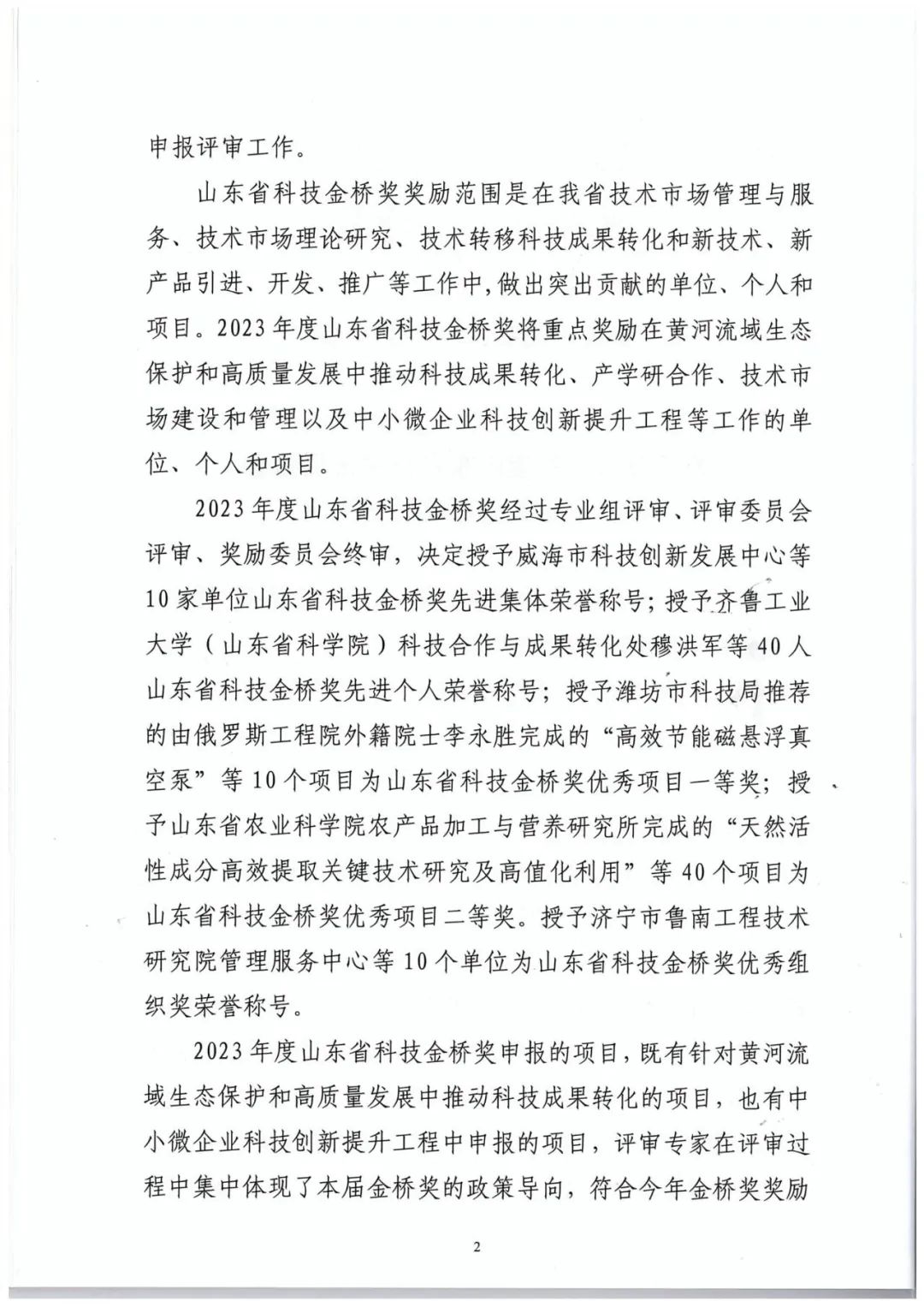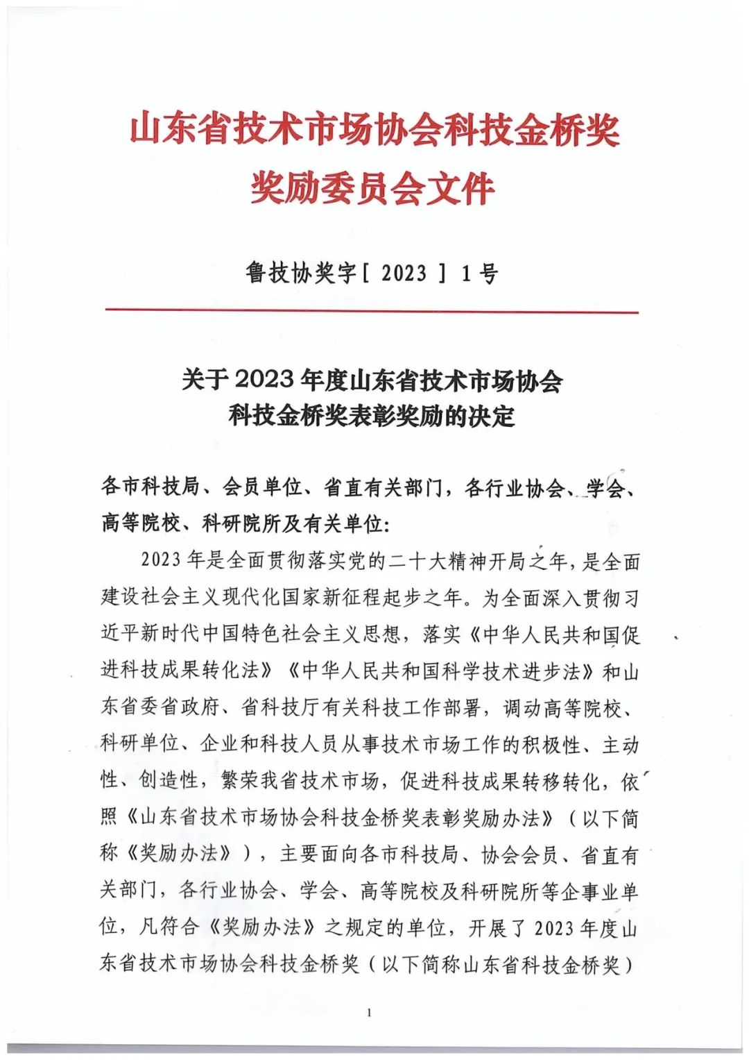 附:2023年度山東省技術市場協會科技金橋獎獎勵委員會文件及優秀項目一等獎名單