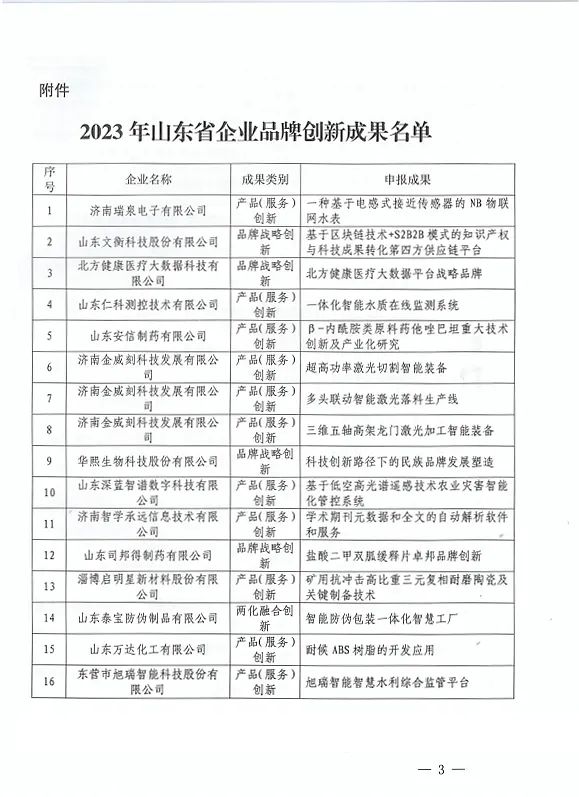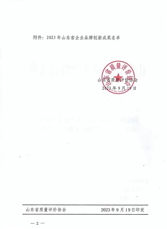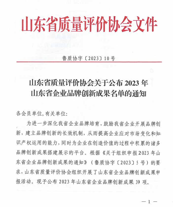 附:《山東省質量評價協會關于公布2023年山東省企業品牌創新成果名單的通知》