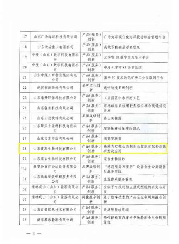 近日,山東省質量評價協會下發了《山東省質量評價協會關于公布2023年山東省企業品牌創新成果名單的通知》(魯質協字【2023】5號)文件,山東健源生物科技有限公司自主研發的“高效青貯微生態制劑及智能化配套設施研發及應用”成果,被評為2023年山東省企業品牌創新優秀成果。