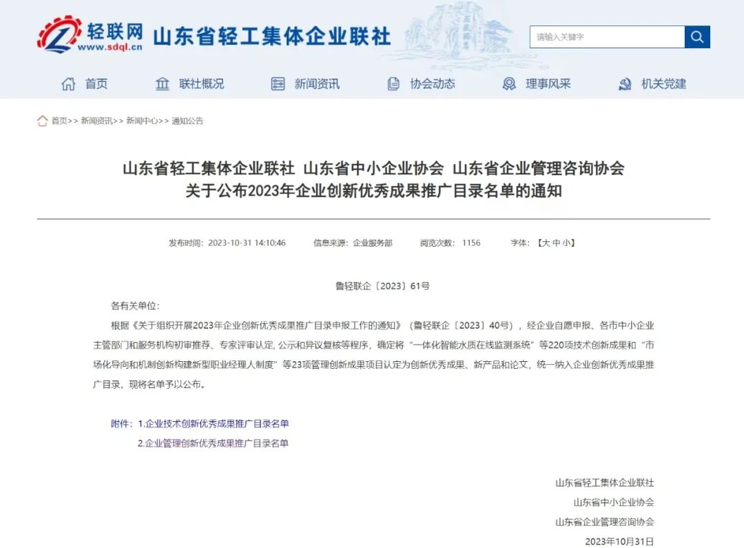 入選山東省企業創新成果推廣目錄