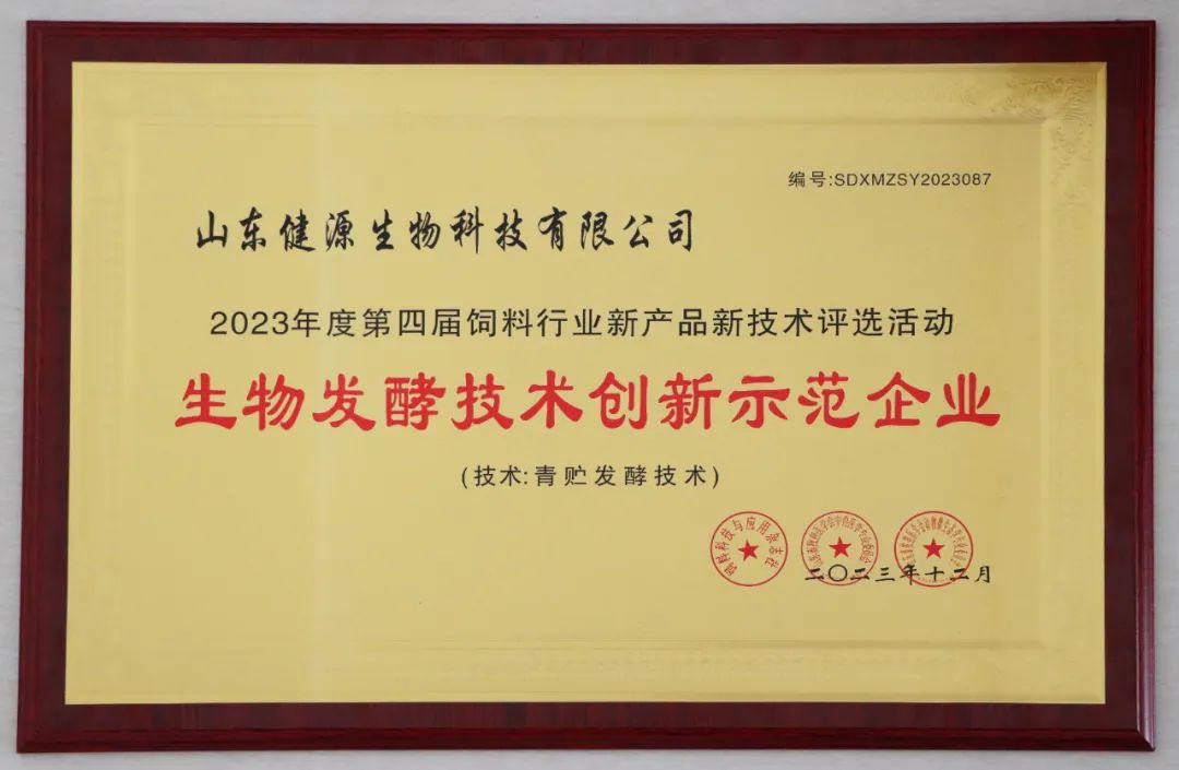 健源生物榮獲“2023年生物發酵技術創新示范企業”稱號