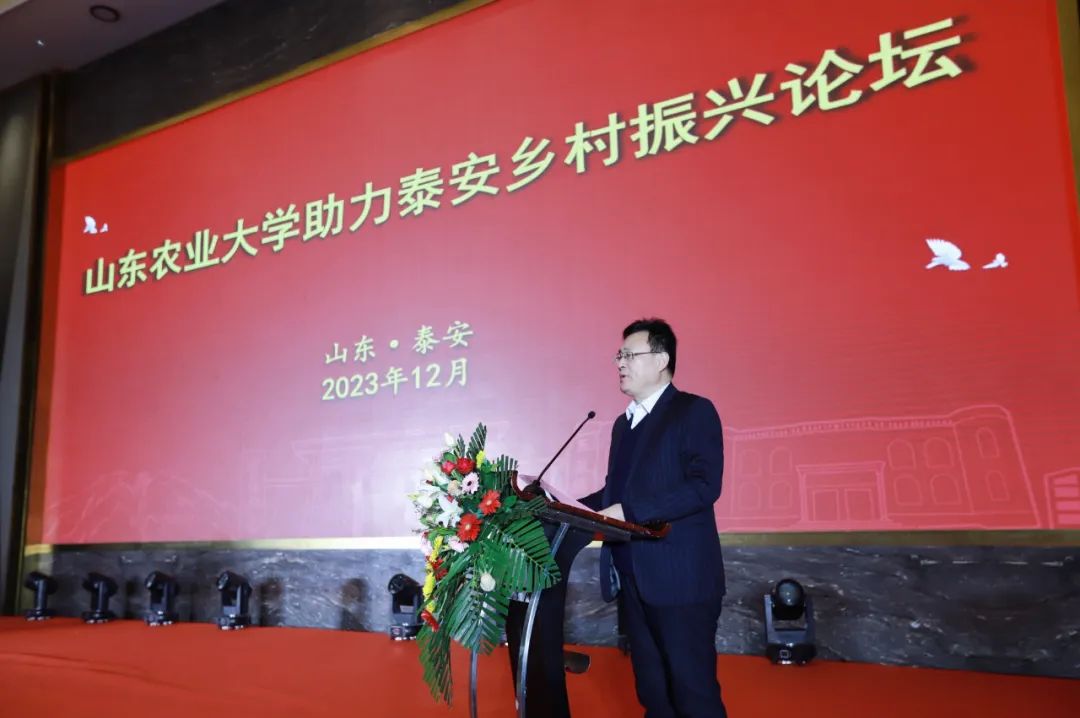 2023年12月31日,山東農業大學助力泰安鄉村振興論壇暨山東農業大學校友會泰安聯絡處理事會換屆大會在泰安舉行。泰安市人大常委會黨組副書記、副主任辛海明,泰安市政協副主席張步軍,山東農業大學黨委副書記嵇景濤出席會議。山東農業大學校友會秘書長亓愛收主持活動,山東健源生物科技有限公司董事長王誠出席會議。