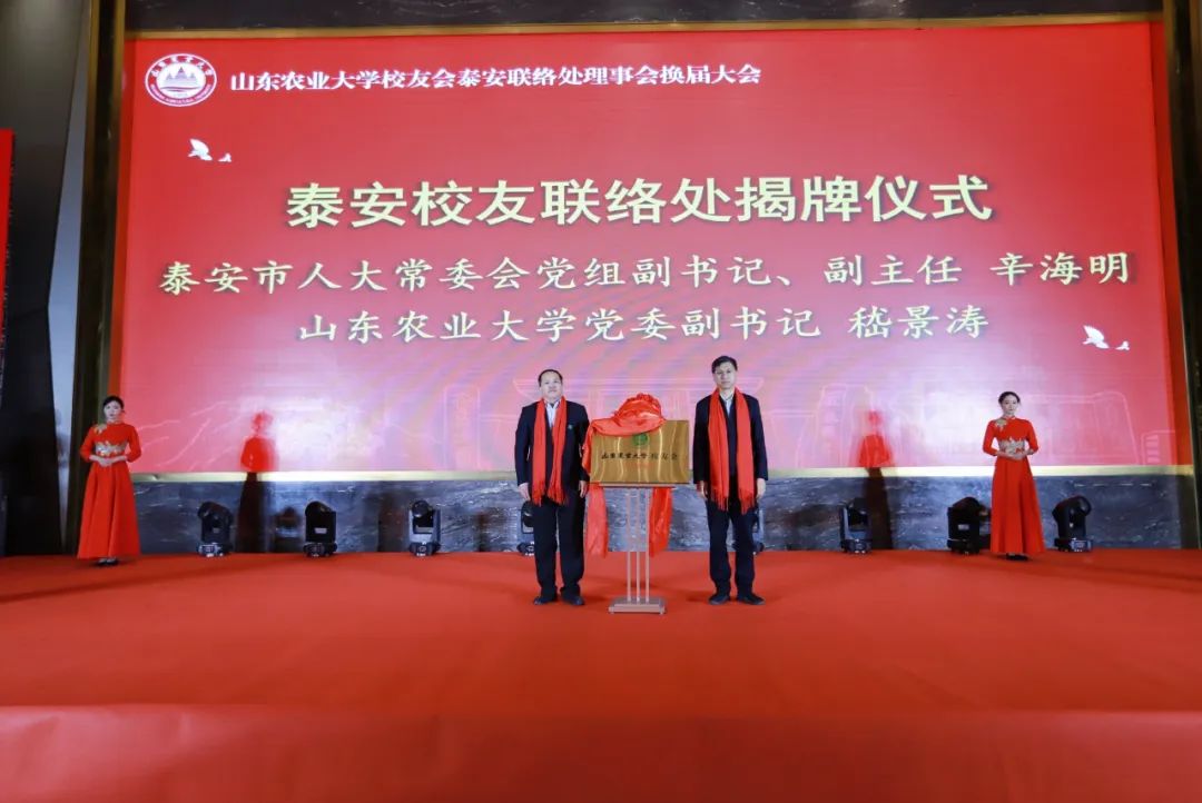 會上,泰安市人大常委會黨組副書記、副主任辛海明,山東農業大學黨委副書記嵇景濤共同為泰安聯絡處揭牌。
