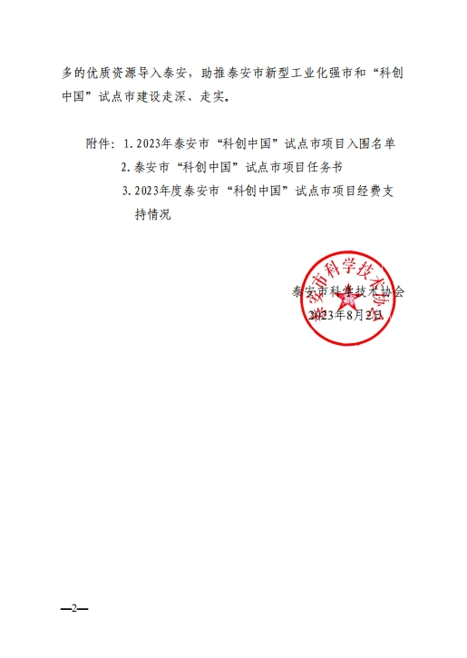 附:2023年泰安市“科創(chuàng)中國”試點(diǎn)市項(xiàng)目擬入圍名單