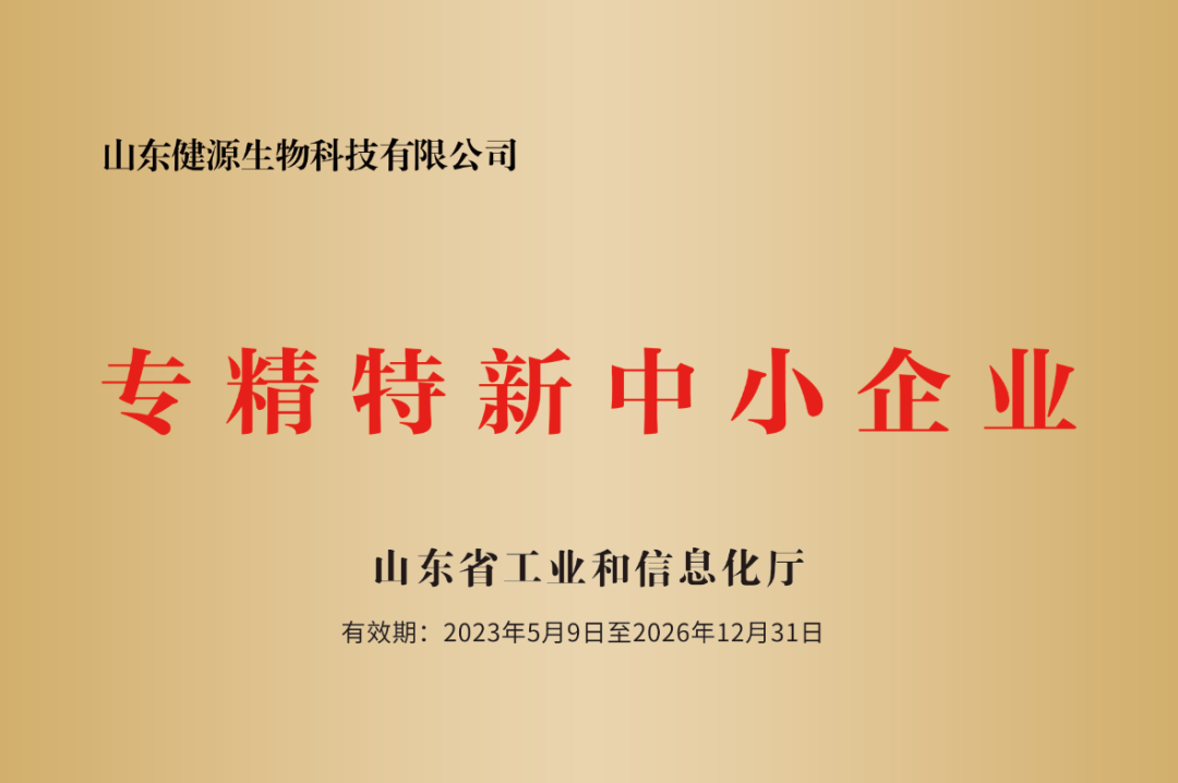 2023年7月,山東省工信廳認定健源生物為2023年度山東省瞪羚企業。