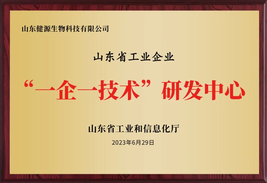 2023年6月,健源生物被山東省工信廳認定為2023年山東省工業企業“一企一技術”研發中心。