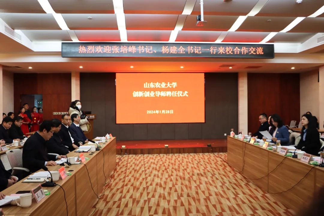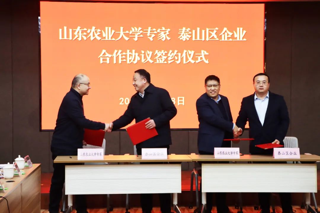會上,泰山區與學校簽訂校地戰略合作框架協議、泰山區有關企業與學校相關專家簽訂合作協議,并由山東農業大學為泰山區五位企業家頒發創新創業導師聘書。健源生物董事長王誠被聘請為山東農業大學創新創業導師。
