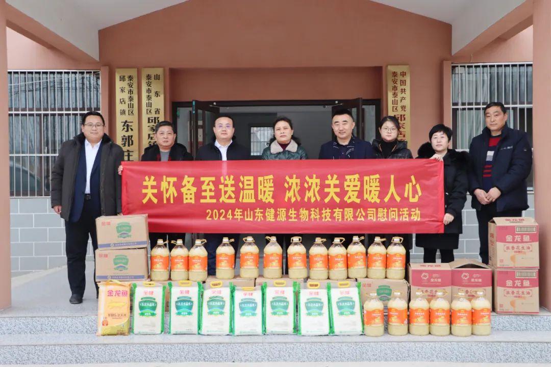 2024年1月31日,健源生物董事長王誠分別來到泰山區邱家店鎮東郭莊村和岱岳區徂徠鎮桃園村,看望了當地的貧困家庭,并為他們帶去了暖心的米、油等慰問品。