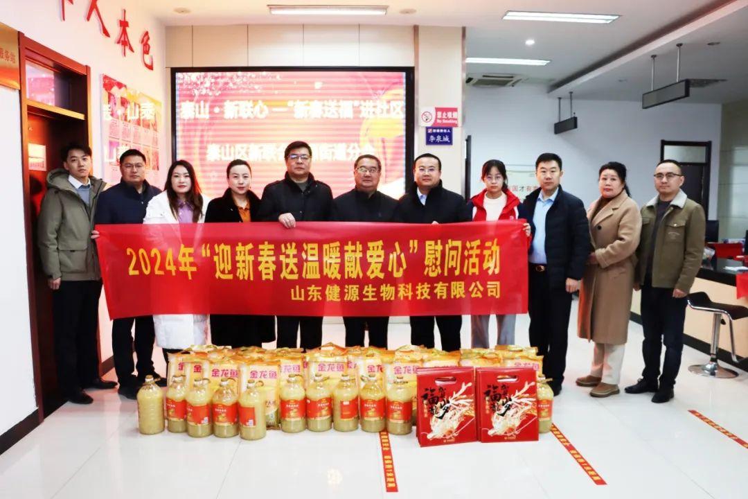 2024年2月4日,健源生物董事長王誠來到泰山區財源街道青山社區,組織大家看望了困難群眾,向他們送上溫暖的節日慰問和愛心物資。