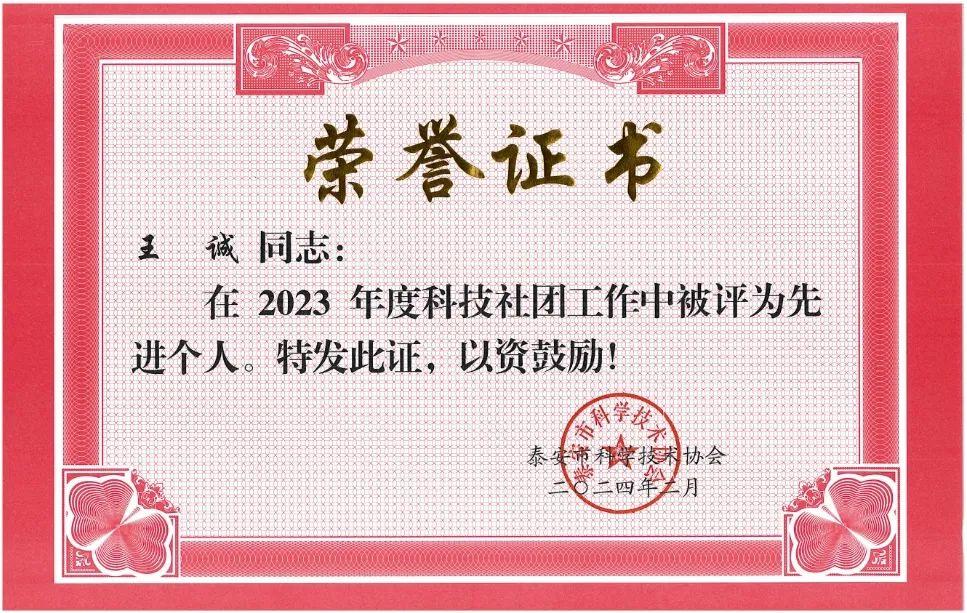 董事長王誠在泰安市科協會議上作典型發言并榮獲多項榮譽