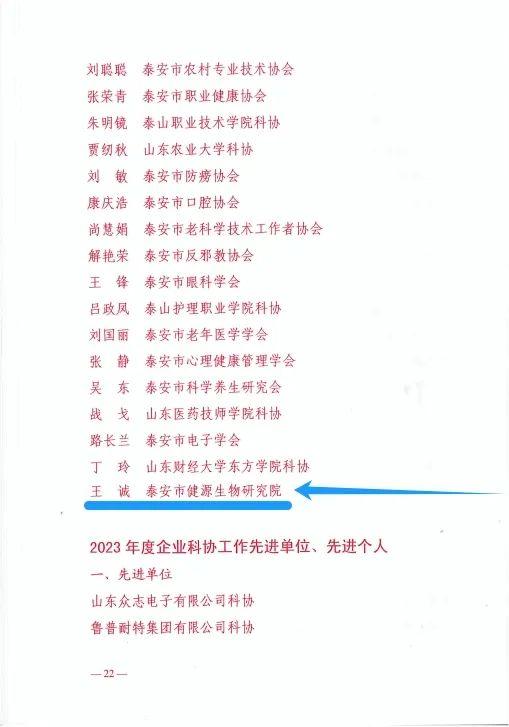 董事長王誠榮獲2023年度企業科協工作先進個人,健源生物榮獲先進單位