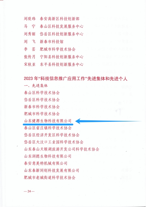 2024年,健源生物科協將繼續在泰安市科協的大力支持下,落實各項政策要求,積極參加科協組織的學術交流活動,繼續攻堅克難、砥礪奮進、苦練內功,開拓新思路、開發新產品、開辟新賽道,以科技助力“三農”工作和鄉村振興,為服務我市新型工業化城市建設貢獻自己的力量。