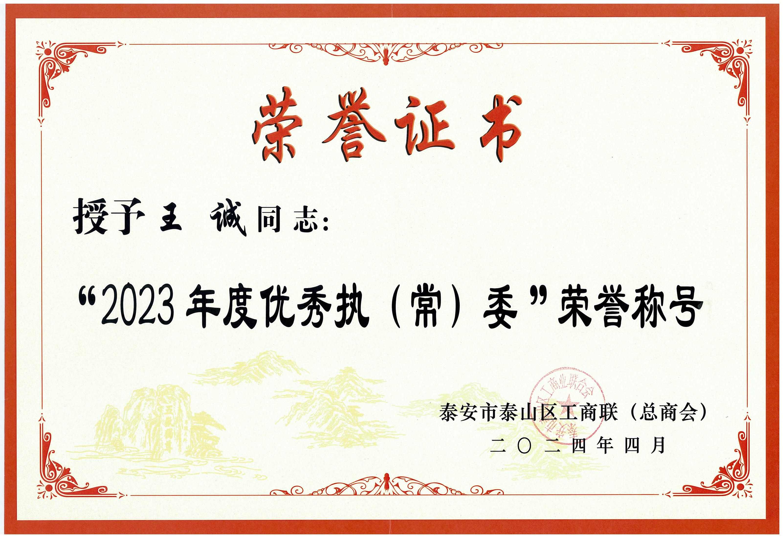 董事長王誠榮獲泰山區工商聯“2023年度優秀執(常)委”榮譽稱號