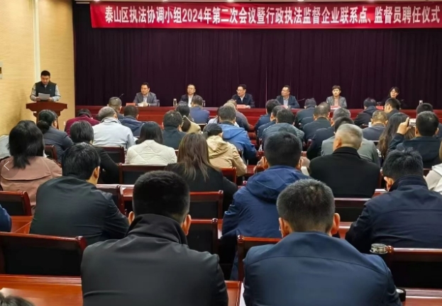 發(fā)布時(shí)間:[2024-10-26 17:27:23] 瀏覽量:2384次10月22日,泰山區(qū)舉行區(qū)委全面依法治區(qū)委員會(huì)執(zhí)法協(xié)調(diào)小組第二次會(huì)議暨行政執(zhí)法監(jiān)督企業(yè)聯(lián)系點(diǎn)、行政執(zhí)法監(jiān)督員聘任儀式。泰安市司法局黨委委員、四級(jí)調(diào)研員張昊寧到會(huì)并講話,泰山區(qū)委常委、區(qū)委政法委書(shū)記吳杰主持會(huì)議,各街道(鄉(xiāng)鎮(zhèn))、區(qū)直執(zhí)法部門(mén)分工負(fù)責(zé)同志,行政執(zhí)法監(jiān)督員、行政執(zhí)法監(jiān)督企業(yè)聯(lián)系點(diǎn)代表參加會(huì)議。