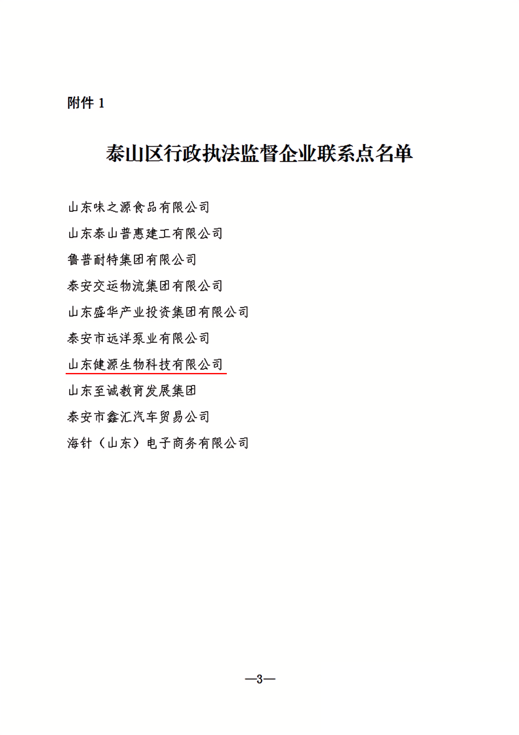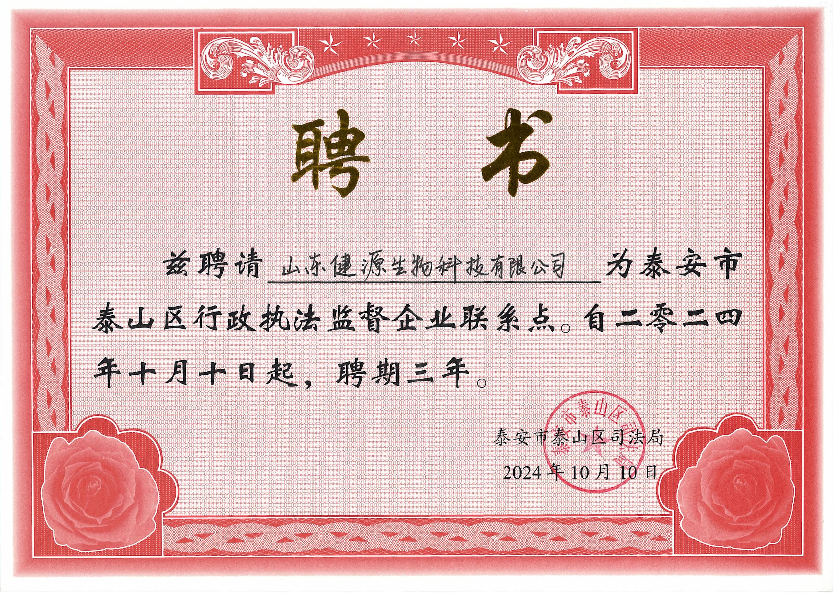 健源生物被設(shè)為泰山區(qū)行政執(zhí)法監(jiān)督企業(yè)聯(lián)系點(diǎn)