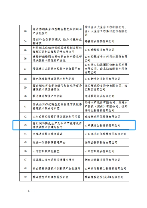 近日,山東省科學技術協會公示2024年山東省企業典型創新案例入選名單,山東健源生物科技有限公司的“青貯飼料高效生產及牛羊節糧增效養殖關鍵技術創建與應用”項目入選山東省典型創新案例-技術創新組。
