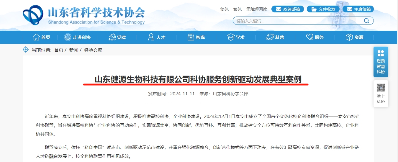 喜報|健源生物項目入選2024年山東省企業典型創新案例