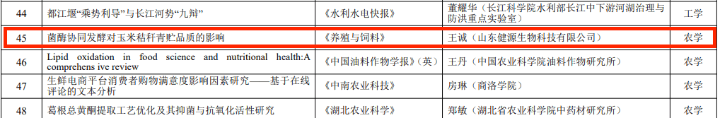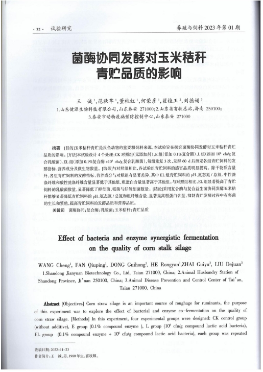 發(fā)布時間:[2025-1-15 17:6:25] 瀏覽量:2252次2024年12月31日,由湖北省科學技術(shù)協(xié)會指導,湖北省科學技術(shù)期刊編輯學會組織實施的2023年度湖北省科技期刊百篇優(yōu)秀論文遴選結(jié)果公布,經(jīng)過評選,山東健源生物科技有限公司董事長王誠帶領(lǐng)研發(fā)團隊撰寫的《菌酶協(xié)同發(fā)酵對玉米秸稈青貯品質(zhì)的影響》論文入選2023年度湖北省科技期刊百篇優(yōu)秀論文。