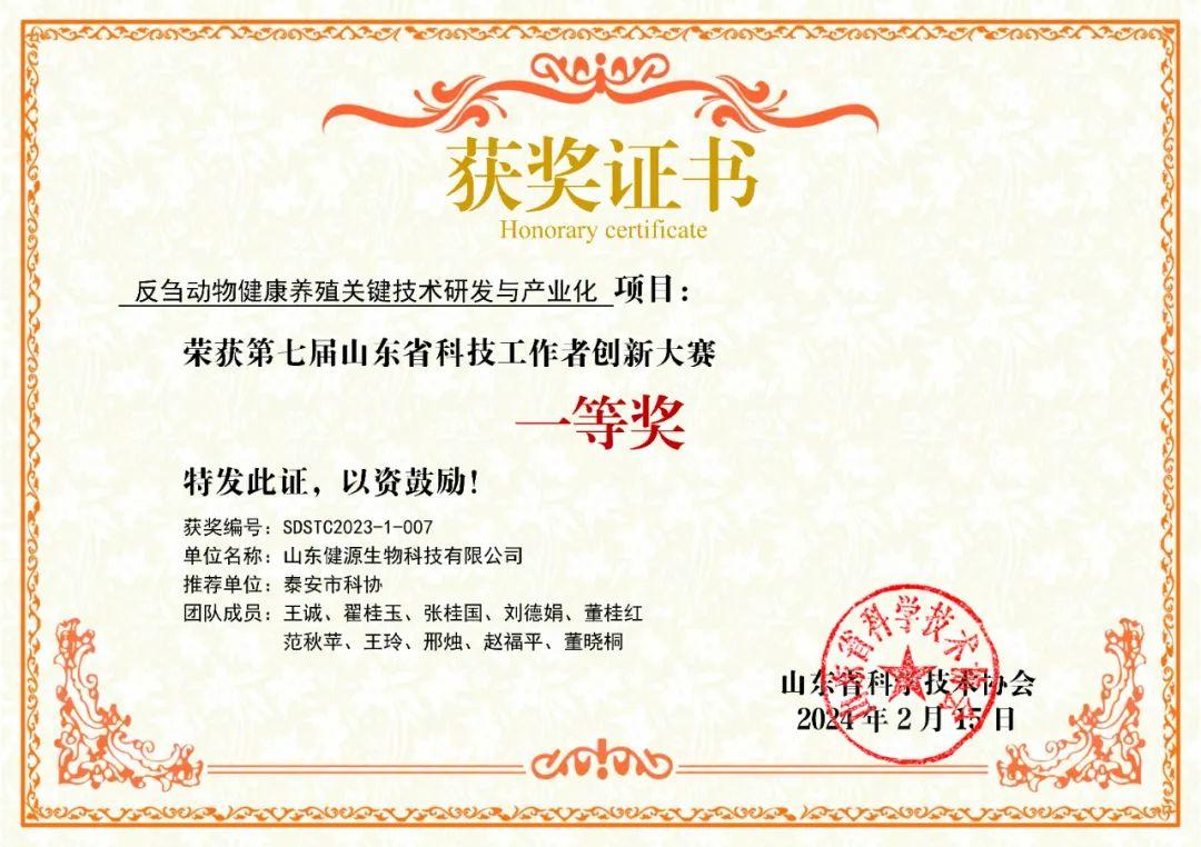 健源生物項目榮獲山東省第七屆科技工作者創新大賽一等獎