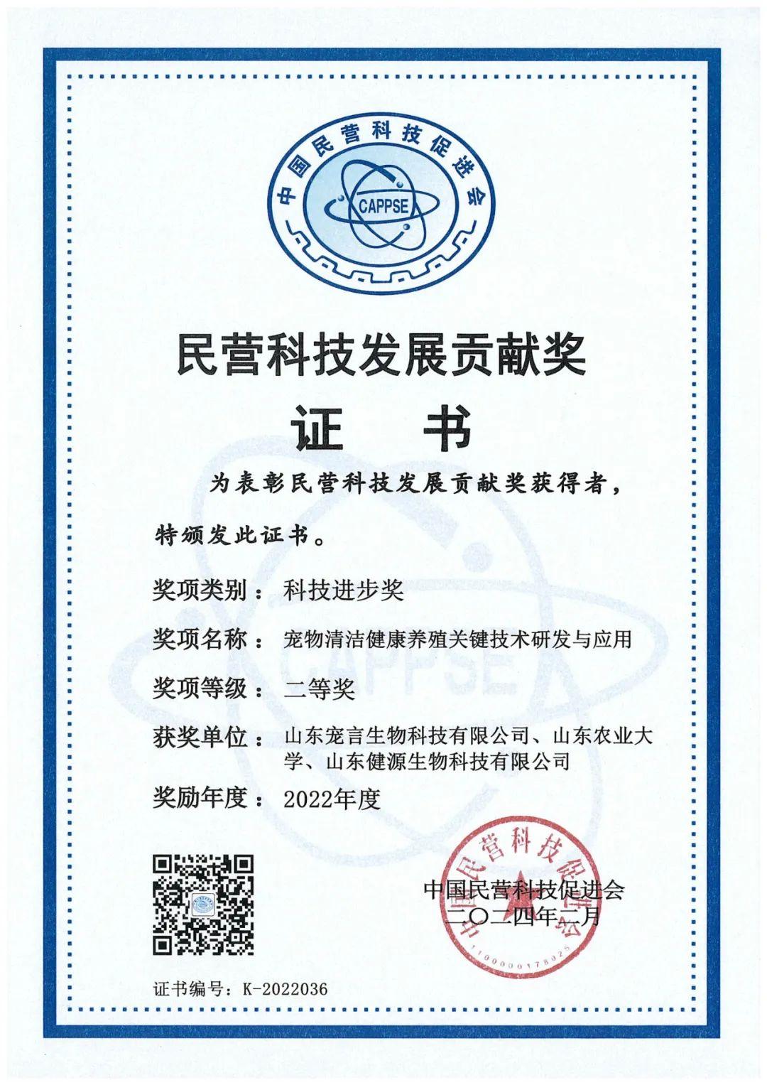 健源生物榮獲2022年度民營科技發展貢獻獎科技進步獎二等獎