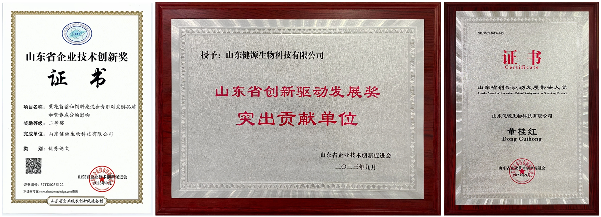 祝賀山東健源生物科技有限公司 《高效青貯微生態制劑及智能化配套設施研發及應用》 榮獲 2023年山...