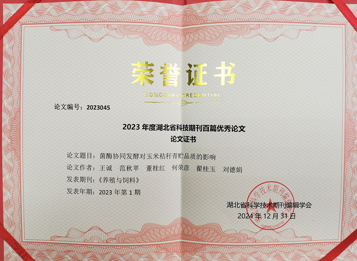 健源生物發(fā)表在《養(yǎng)殖與飼料》的論文入選2023年度湖北省科技期刊百篇優(yōu)秀論文